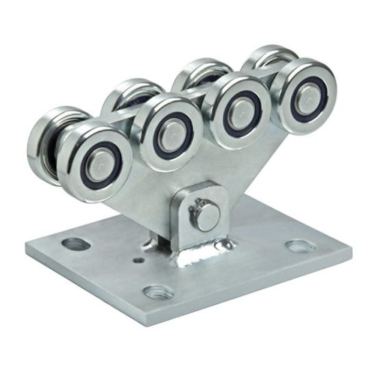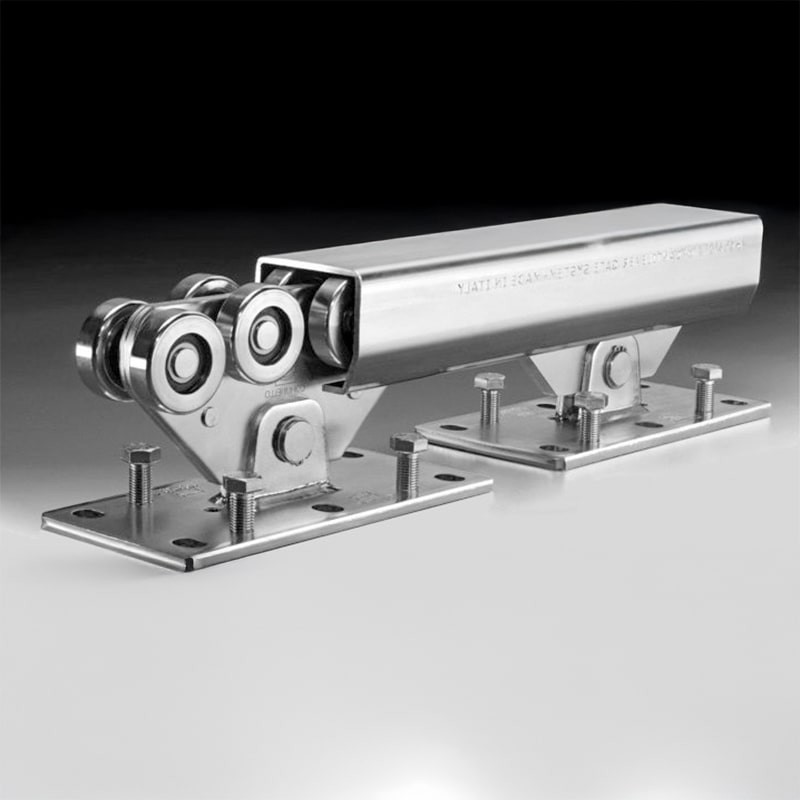 Al onze schuifpoorten worden gemaakt met een vrijdragende stalen constructie die moet worden bevestigd op een betonfundering. De schuifpoort wordt gedragen door twee wielblokken met daarin gelagerde wielen die door een C-profiel bewegen. Zo zijn er geen rails of neuswielen nodig die over de grond gaan.